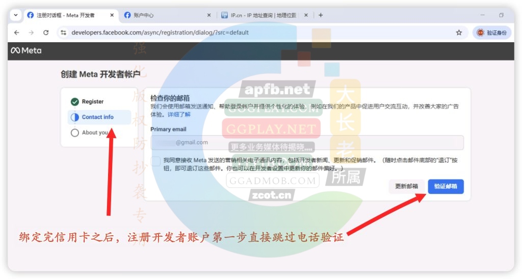 这个时候刷新开发者注册页面,电话验证的要求直接消失了,点击验证邮箱,直接完成了注册,如下图。