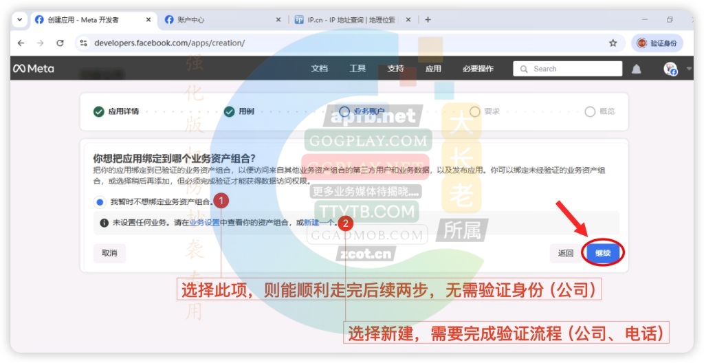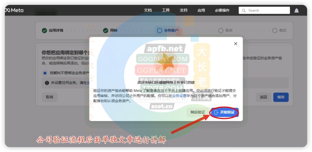 业务账户这一步,可以不设置或创建业务账户直接继续走流程,如果选择新建一个业务账户,则需要完成验证。