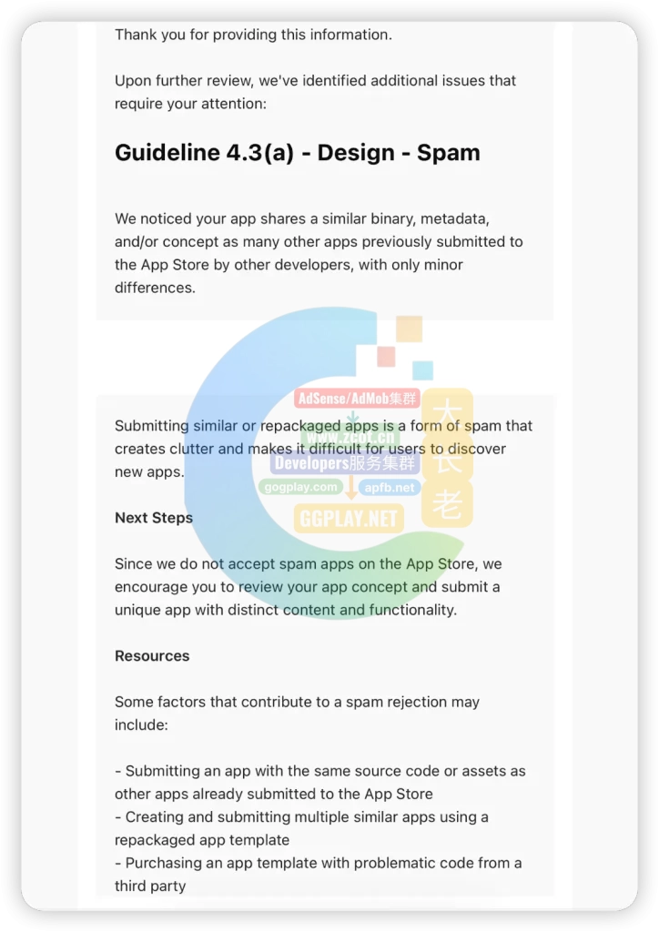 重新支付99美元等值“苹果开发者保护费”之后,最大的问题就是马甲包的4.3a问题,对于资深开发者,很容易绕过重复代码、重复APP这个基础问题。偷懒或者运气不好的开发者是最容易遇到4.3问题。